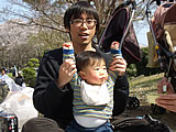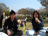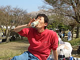 | (*~o~)□ぷはぁ〜♪外で飲むと更においしいなっ♪ 私は花より ―○●◎ |